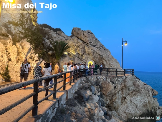 La Misa del Tajo se lleva a cabo en la Pérgola de la Explanada de El Cantal, justo al lado de la Ornacina de la Virgen pequeña del Carmen. Este rincón, bañado por la luz del atardecer y con vistas al mar, se convierte en el escenario perfecto para una ceremonia llena de espiritualidad y sentido de comunidad.